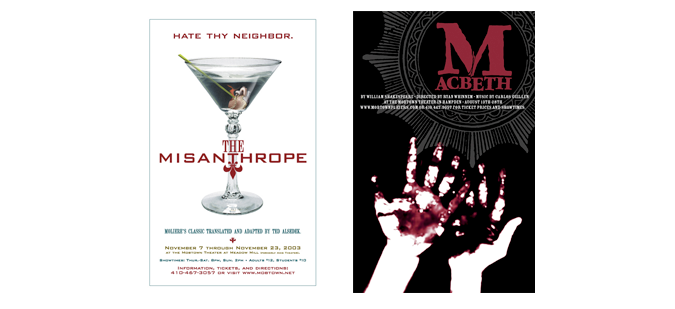 Various posters for local Baltimore theater group. All plays and performances are produced and staged by volunteers, and these posters are no exception.